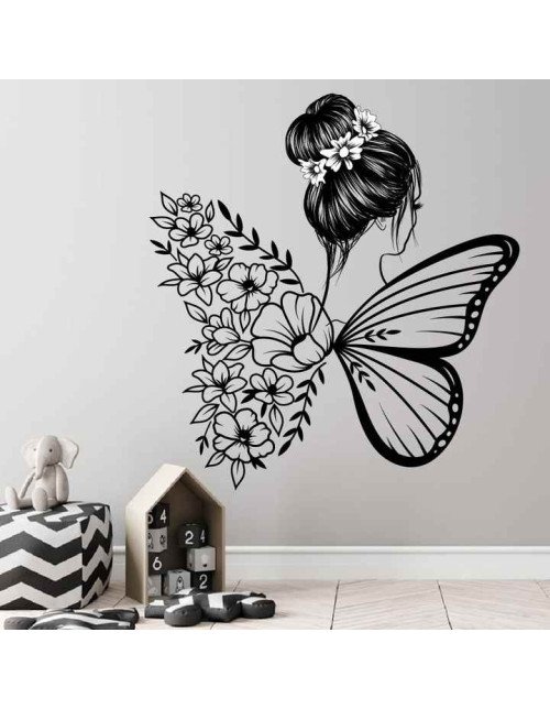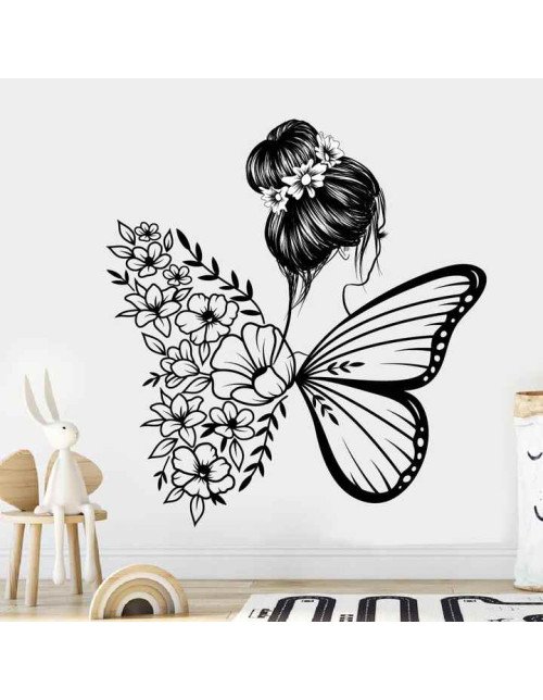 Home Decoration Flower Butterfly Wing Wall Stickers For Girls Bedroom Photo
