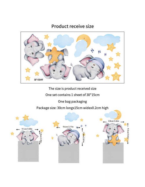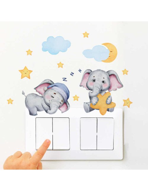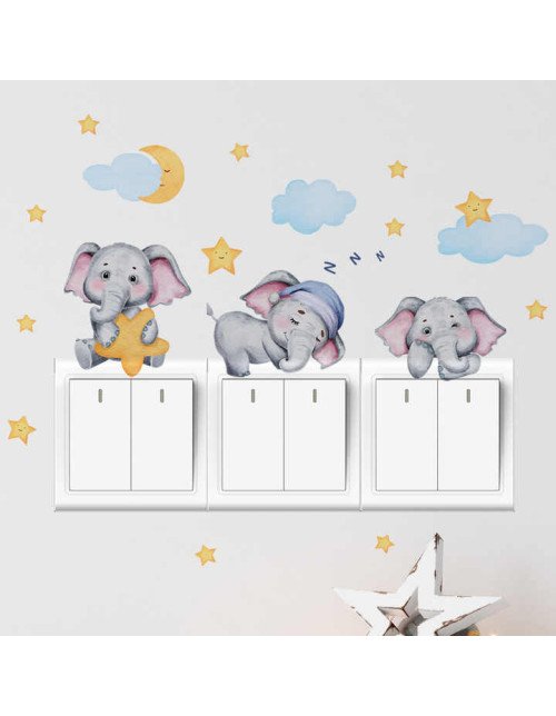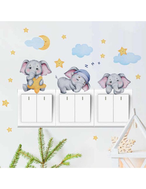 Self Adhesive Baby Room Wall Decoration 3d Cartoon Elephant Switch Stickers