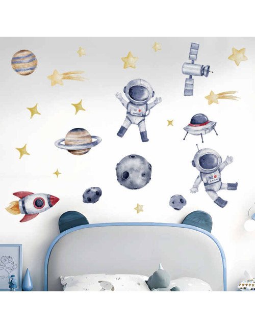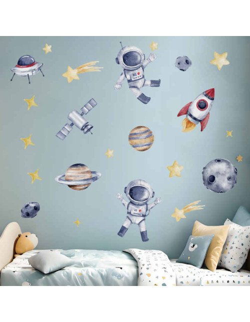 Removable Adhesive Pvc Cartoon Space Astronaut Nursery Wall Decal